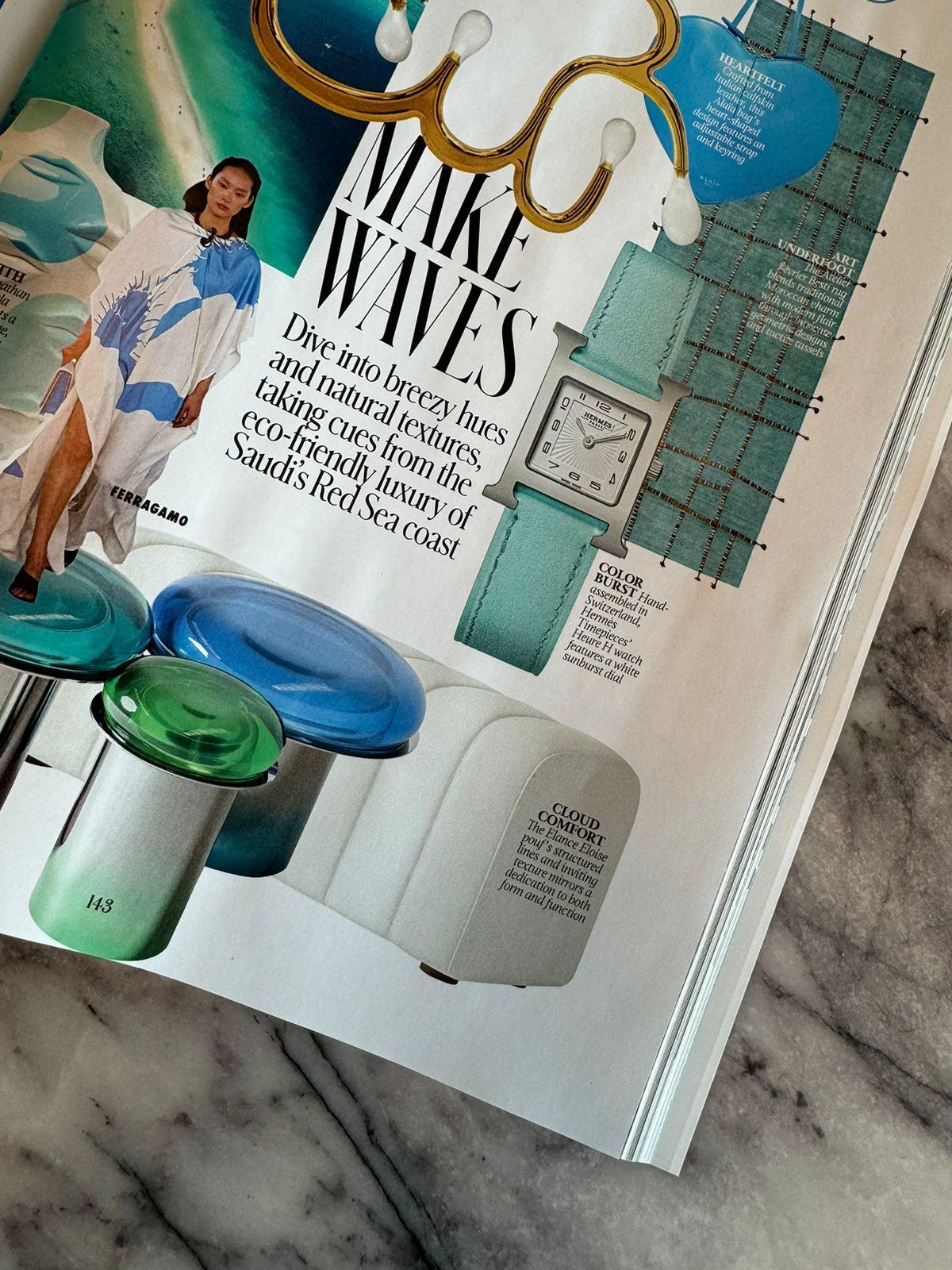 ēlancē got featured in Vogue Arabia Summer 2024. Inspired by the luxurious Red Sea coast, we're proud to share the spotlight with leading names on this stunning 'Make Waves' page.